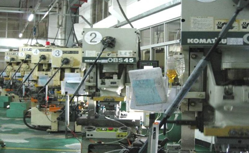 >精密沖壓機台13台:精密沖床5噸~110噸,可連續沖裁0. 07mm~ 3.0mm料厚,製品精度可達到±0.01mm,折彎垂直度+/- 0.03mm,折彎後平面度0.05mm以下,孔徑精度H9